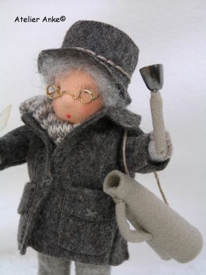 Maar omdat deze jongen op zijn klompschaatsen vele banen veegt en al heeft schoongemaakt van de daarop liggende sneeuw is de naam van dit ontwerp De Banenveger geworden.